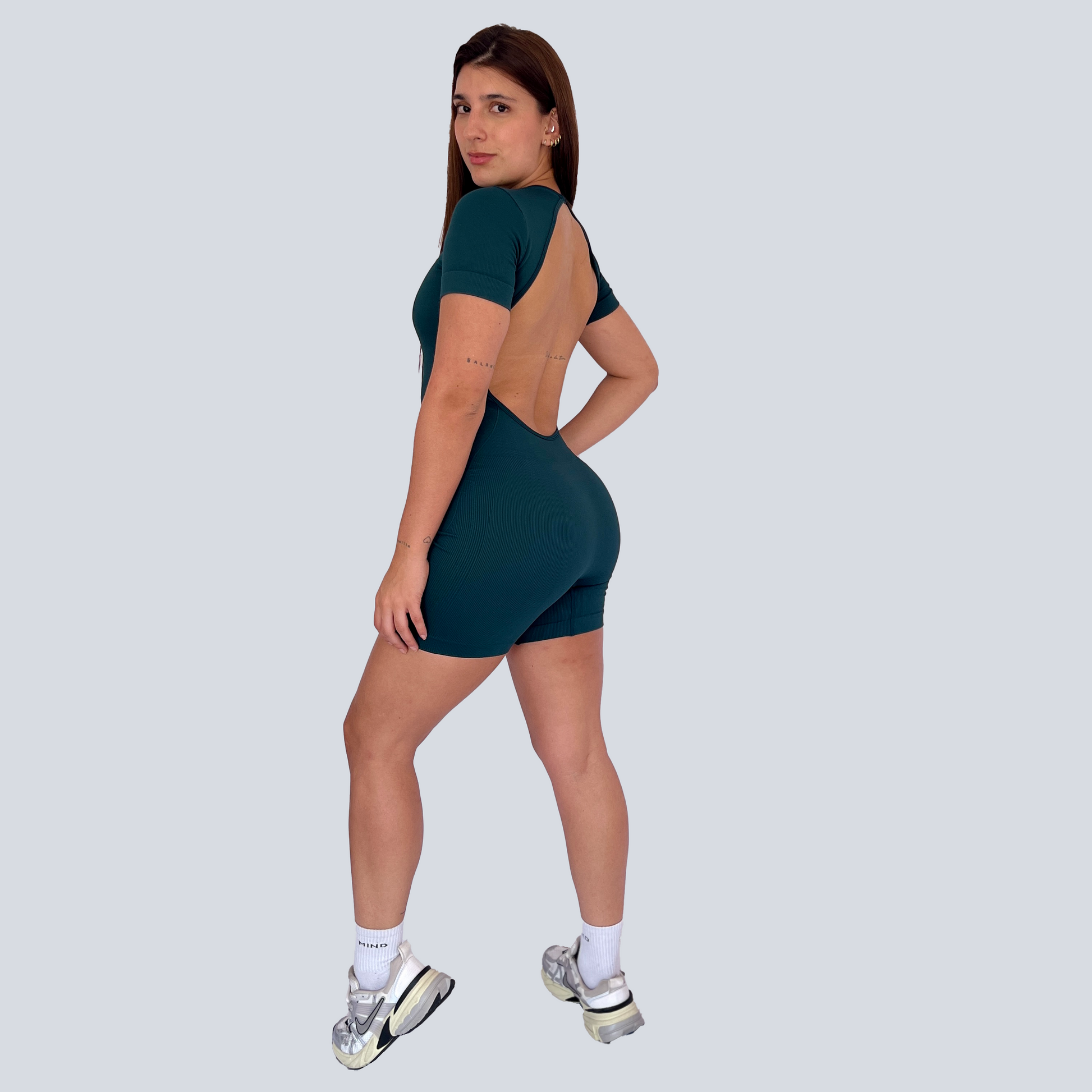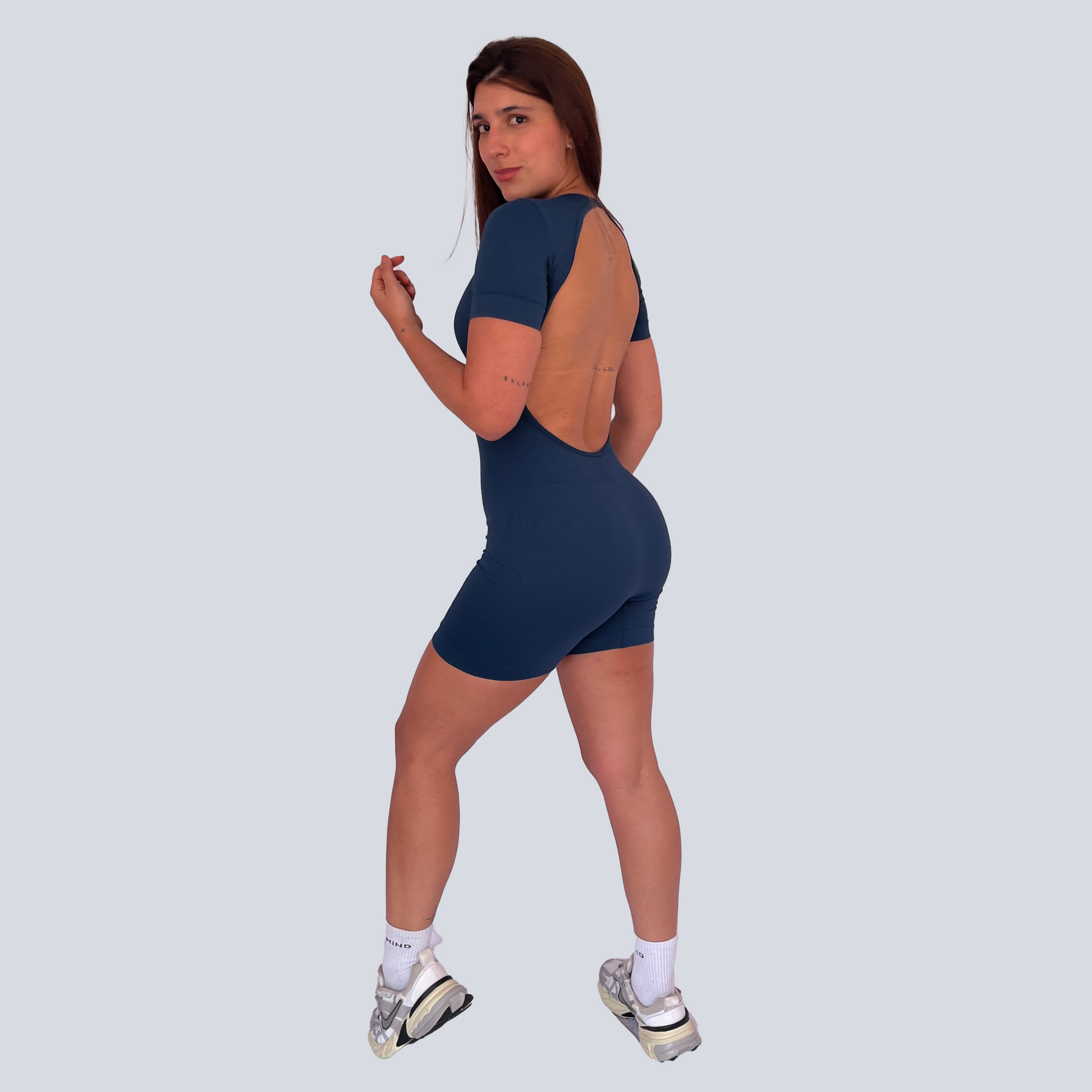 Enterizo deportivo para mujer en short con pretina superior doble con tecnología de compresión que permite mejor soporte en la parte del abdomen y realce de glúteos. El grosor de su tela brinda seguridad y compresión, no transparenta ni se marca, se moldea al cuerpo y te hará sentir con estilo y cómoda en tus rutinas de ejercicio. Luce un sencillo logo de MIND en la parte frontal del enterizo.