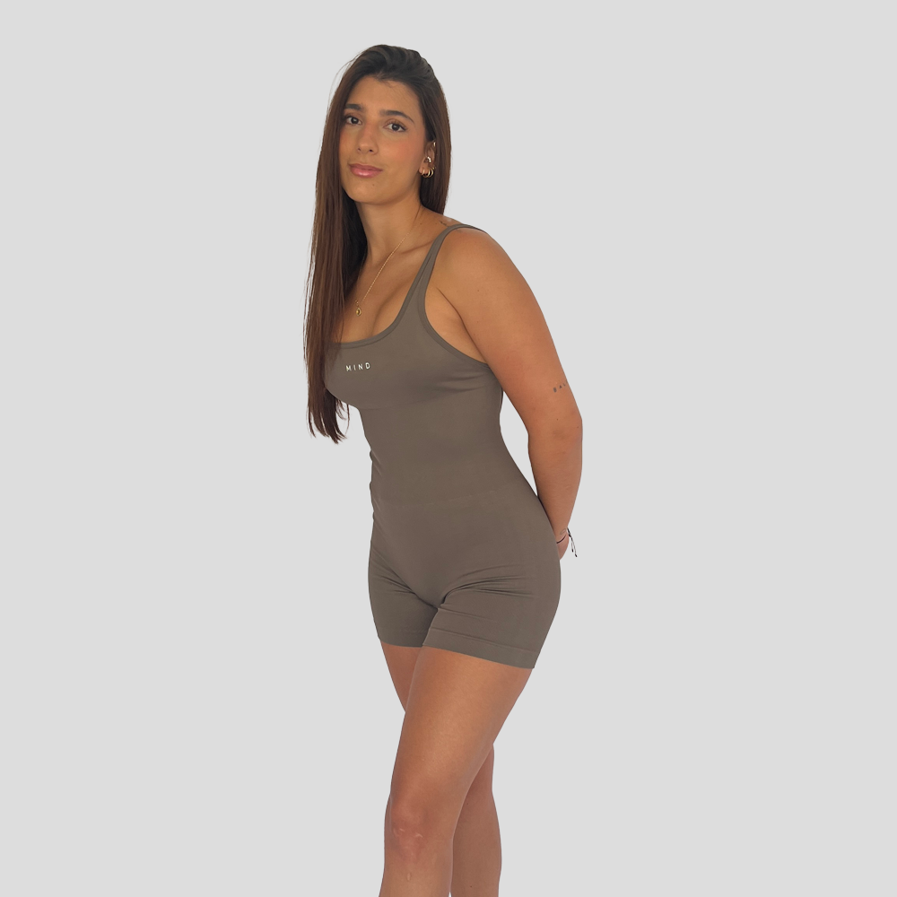 El grosor de su tela brinda seguridad y compresión, no transparenta ni se marca, se moldea al cuerpo y te hará sentir con estilo y cómoda en tus rutinas de ejercicio. Luce un sencillo logo de MIND en la parte frontal del enterizo.