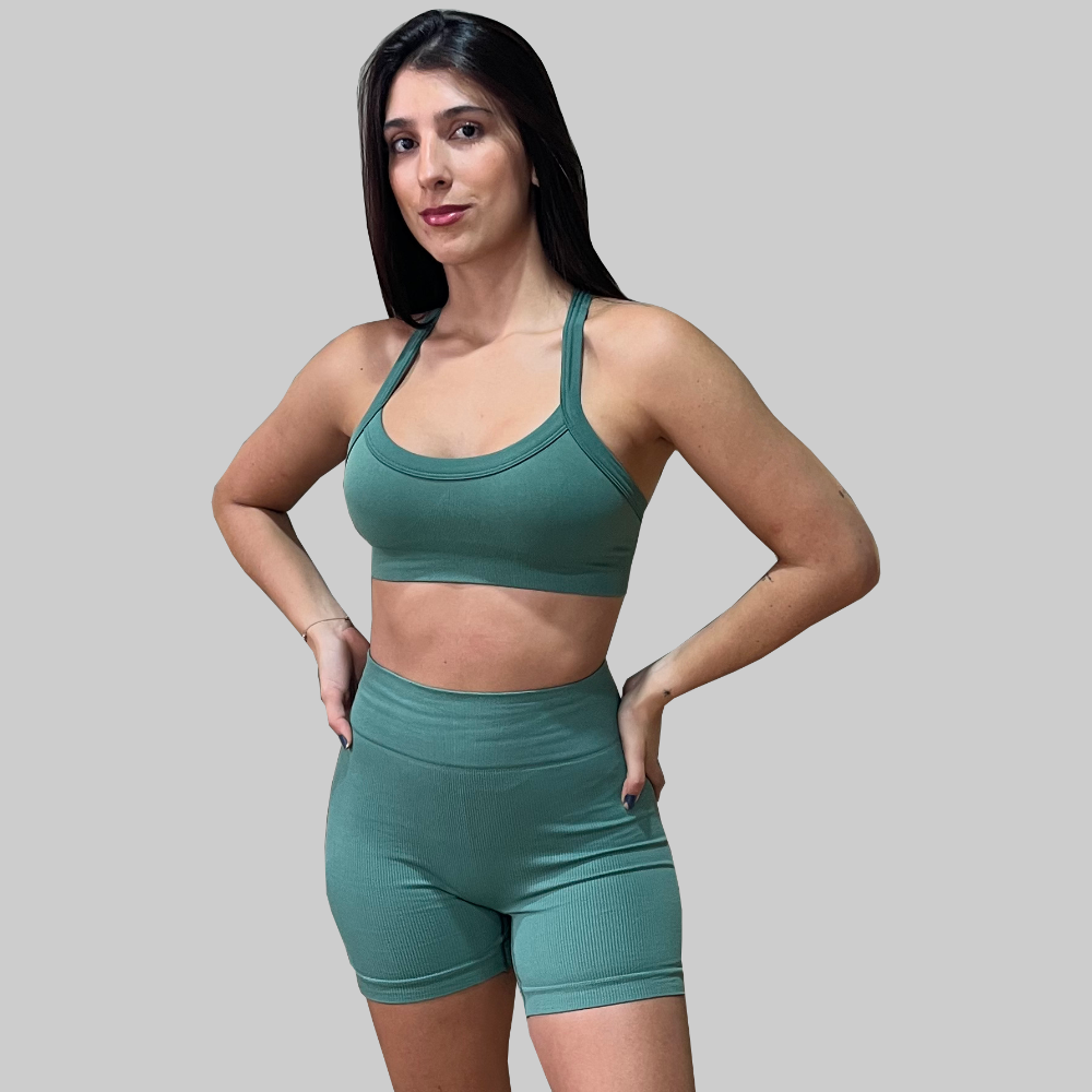Top liso y espalda cruzada, con un muy buen soporte. El grosor de su tela brinda seguridad y compresión, no transparenta ni se marca, se moldea al cuerpo y te hará sentir con estilo y cómoda en tus rutinas de ejercicio. Luce un sencillo logo de MIND es la parte trasera del short y del top para un look muy sobrio y elegante.
