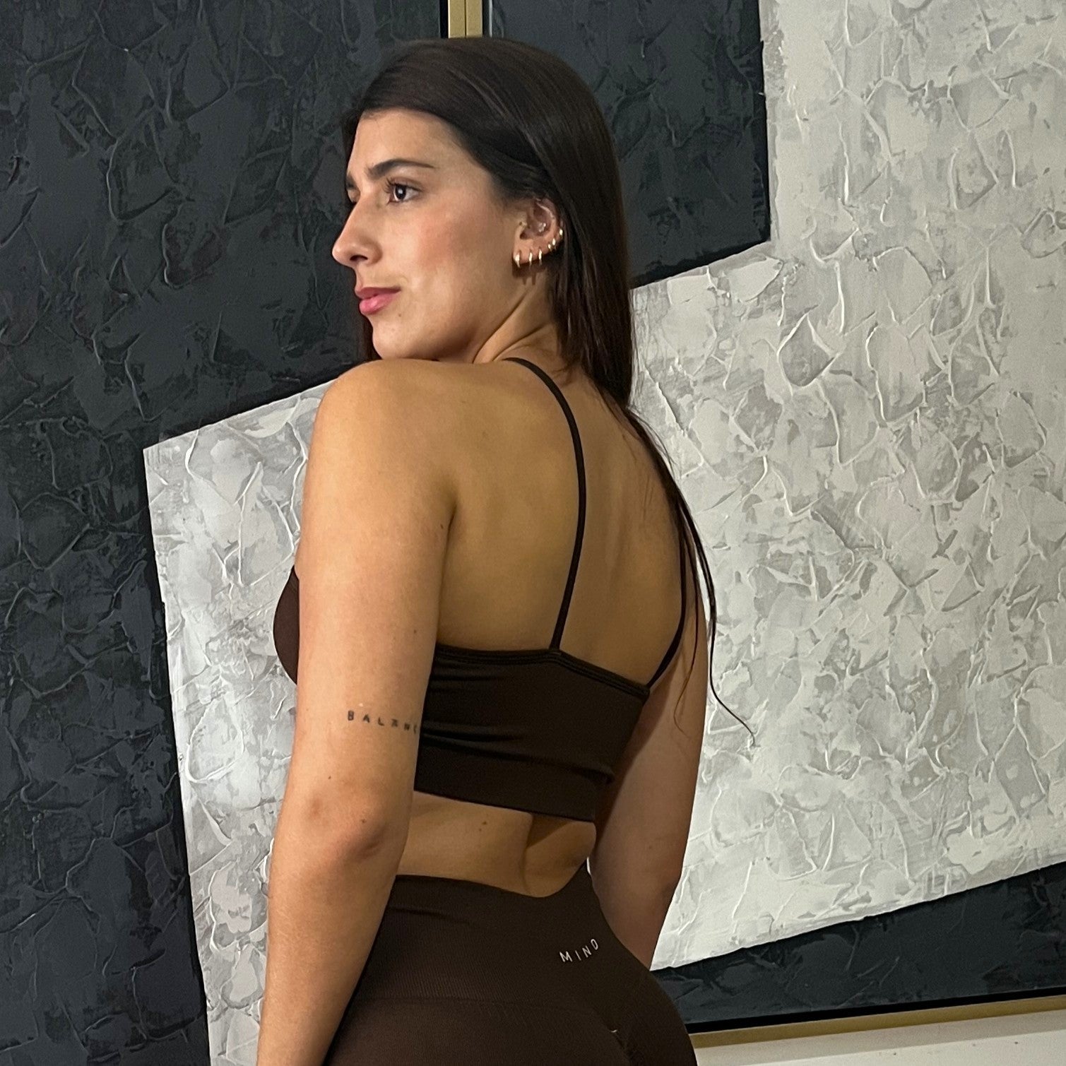 Top con detalle delantero y pretina inferior para mejor soporte. El grosor de su tela brinda seguridad y compresión, no transparenta ni se marca, se moldea al cuerpo y te hará sentir con estilo y cómoda en tus rutinas de ejercicio. Luce un sencillo logo de MIND es la parte frontal del top para un look muy sobrio y elegante.