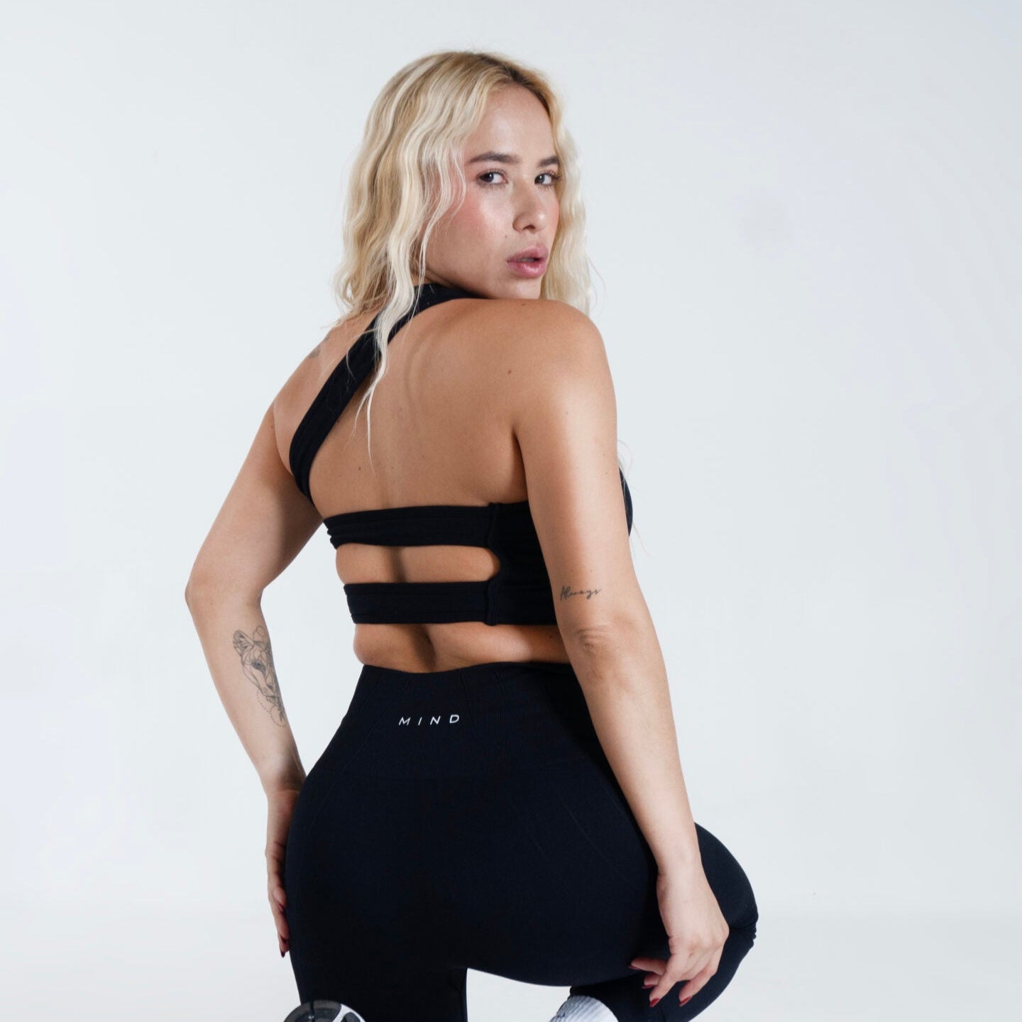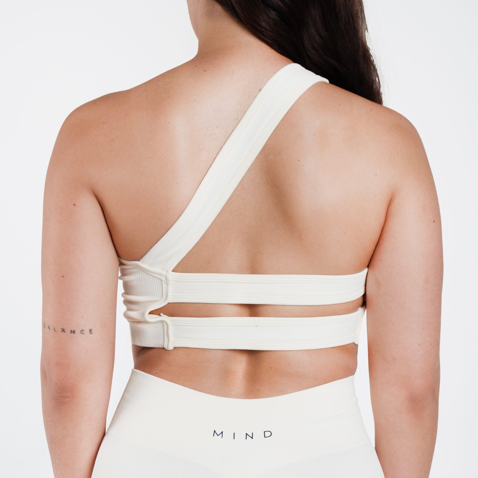 Top de un solo hombro con detalle en la espalda, con pretina inferior para mejor soporte. El grosor de su tela brinda seguridad y compresión, no transparenta ni se marca, se moldea al cuerpo y te hará sentir con estilo y cómoda en tus rutinas de ejercicio. Luce un sencillo logo de MIND es la parte frontal del top para un look muy sobrio y elegante.