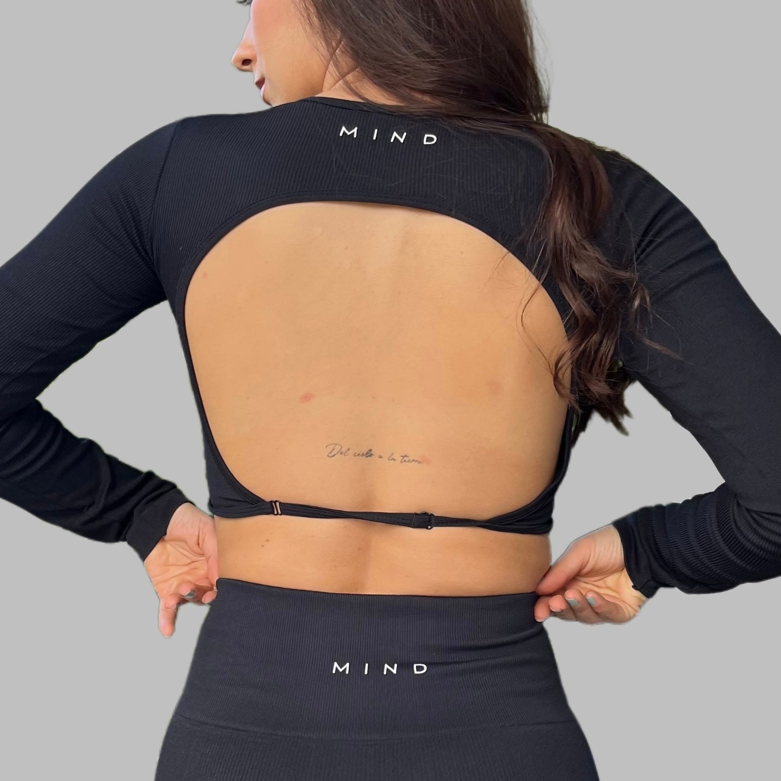 Luce un sencillo logo de MIND es la parte trasera del top y del leggings para un look muy sobrio y elegante.