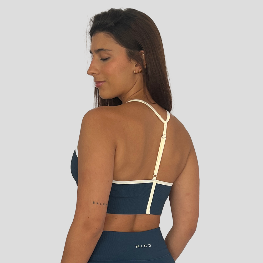 El grosor de su tela brinda seguridad y compresión, no transparenta ni se marca, se moldea al cuerpo y te hará sentir con estilo y cómoda en tus rutinas de ejercicio. Luce un sencillo logo de MIND en la parte trasera del topo.